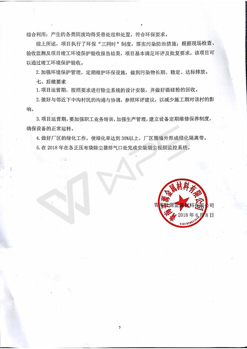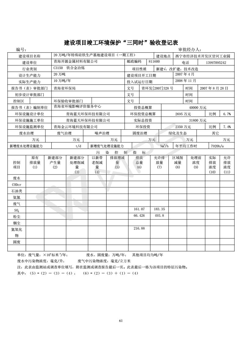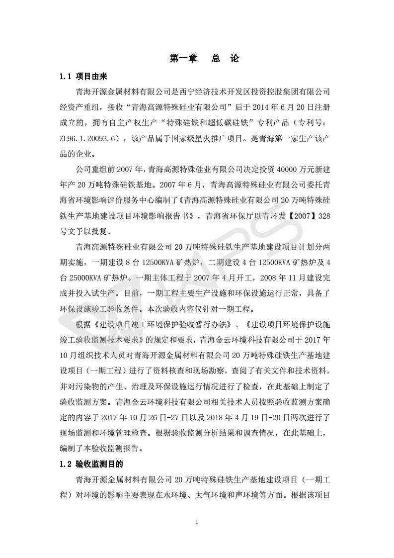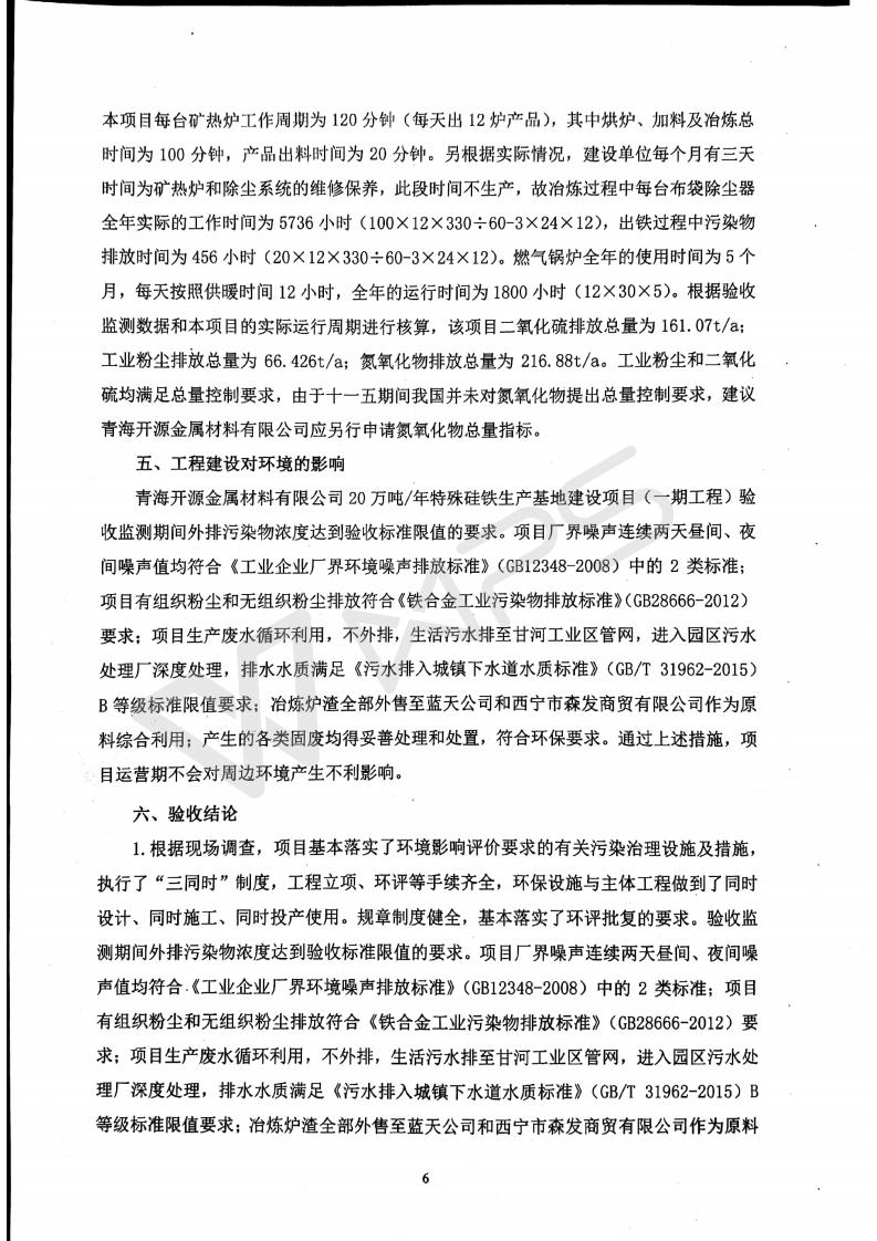 青海開源金屬材料有限公司20萬噸特殊硅鐵生產(chǎn)基地建設項目(一期工程)竣工環(huán)境保護驗收報告書會后修改20180521