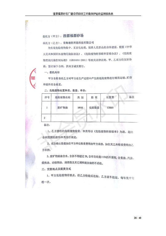 湟源福砂廠建設(shè)項(xiàng)目竣工環(huán)境保護(hù)驗(yàn)收發(fā)布日期:(2018-9-6) 點(diǎn)擊次數(shù):2053 |