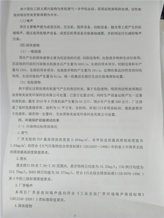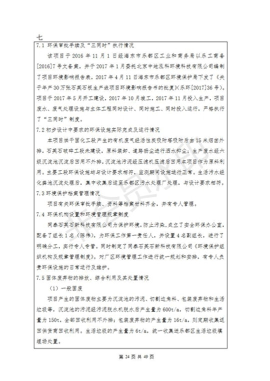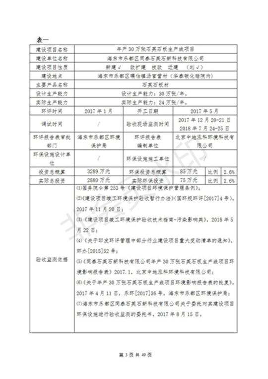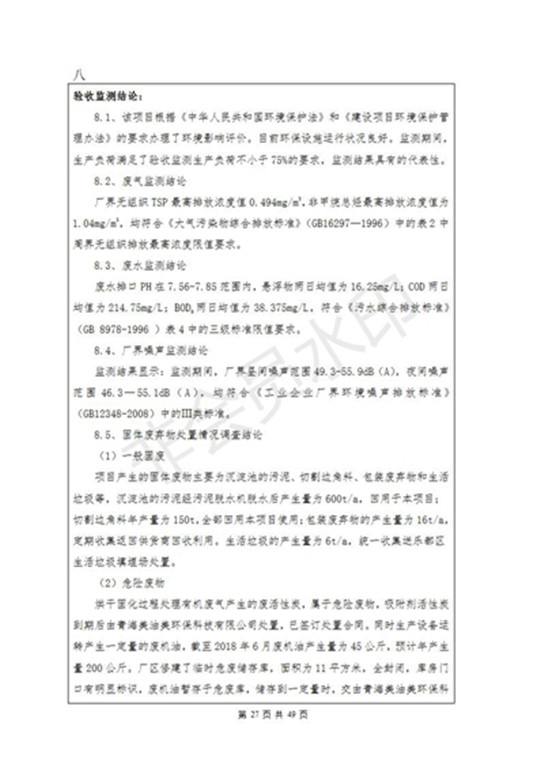 根據(jù)中華人民共和國國務(wù)院令第253號《建設(shè)項目環(huán)境保護管理條例》(中華人民共和國國務(wù)院令第682號《國務(wù)院關(guān)于修改〈建設(shè)項目環(huán)境保護管理條例〉的決定》和《建設(shè)項目竣工環(huán)境保護驗收暫行辦法》,嚴格依照有關(guān)法律法規(guī),建設(shè)項目環(huán)境保護設(shè)施驗收技術(shù)規(guī)范,本項目環(huán)評報告表和環(huán)保審批部門審批意見以及企業(yè)自行驗收相關(guān)要求等對本項目進行驗收,本項目符合環(huán)保驗收條件,可以通過環(huán)保驗收。 海東市樂都區(qū)同泰科技有限公司竣工環(huán)境保護驗收監(jiān)測報告公示