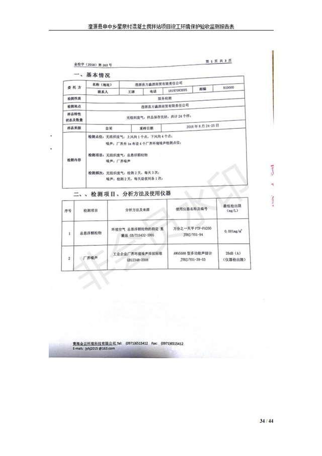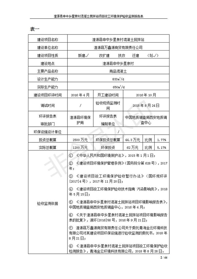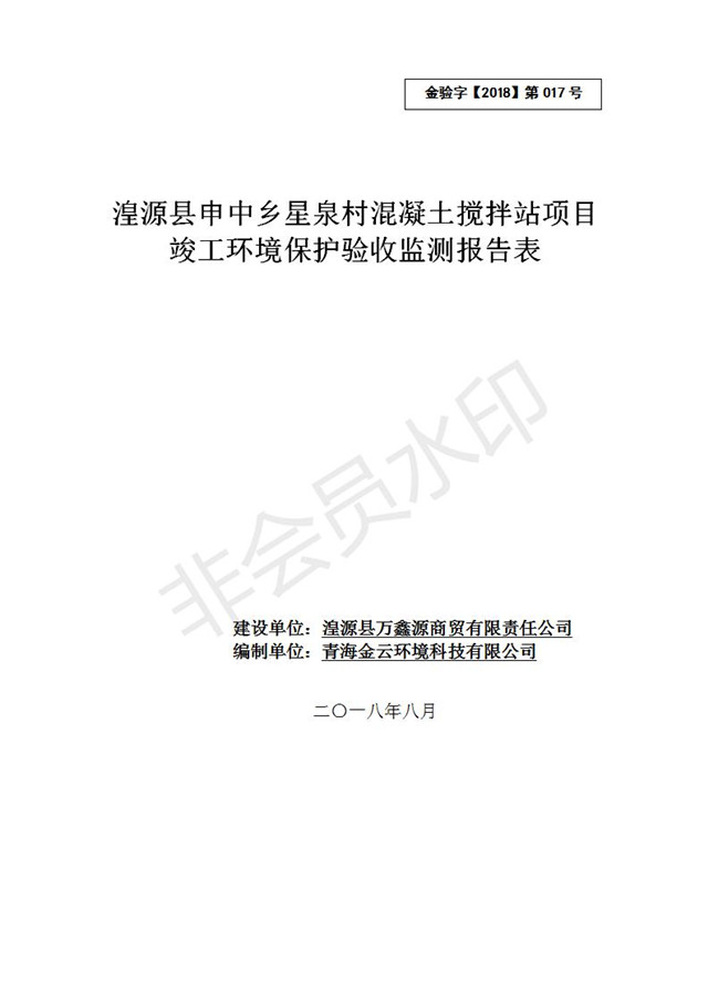 湟源縣申中鄉(xiāng)星泉村混凝土攪拌站項(xiàng)目竣工環(huán)境保護(hù)驗(yàn)收監(jiān)測報(bào)告表公示