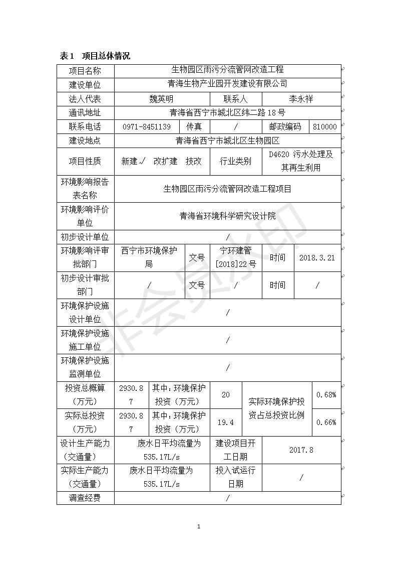 生物園區(qū)雨污分流管網(wǎng)改造工程竣工環(huán)境保護(hù)驗(yàn)收調(diào)查表 公示發(fā)布日期:(2018-12-21) 點(diǎn)擊次數(shù):2754 |