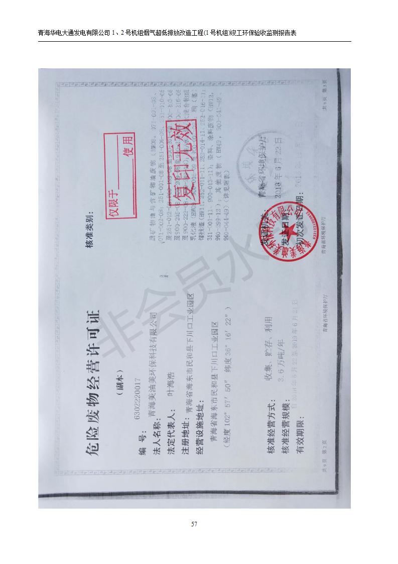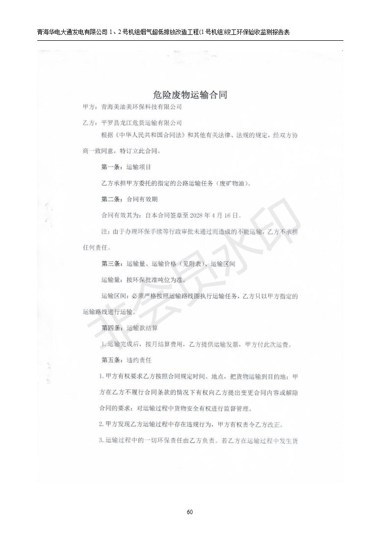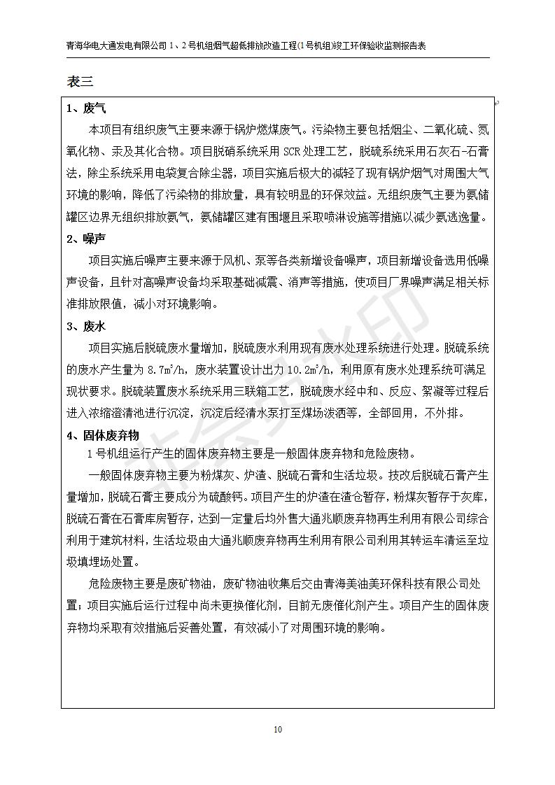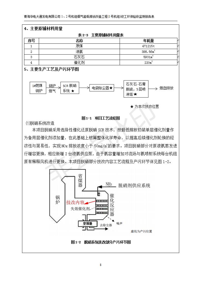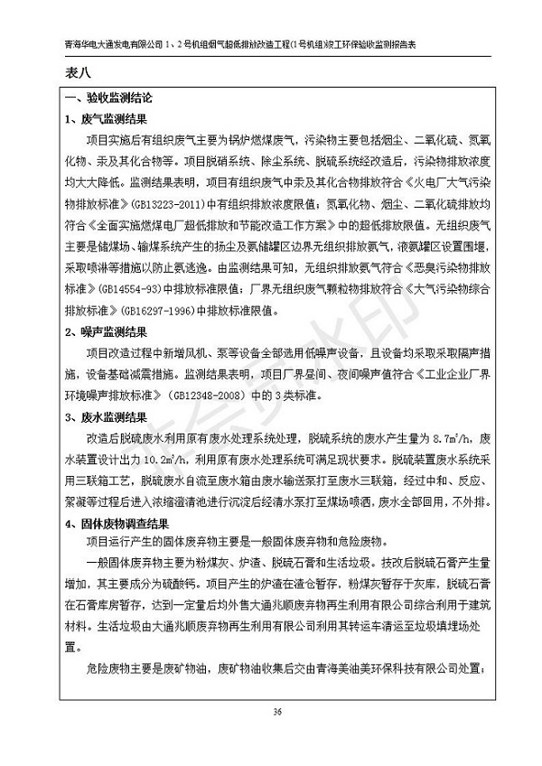 根據(jù)中華人民共和國國務(wù)院令第682號《國務(wù)院關(guān)于修改〈建設(shè)項目環(huán)境保護管理條例〉的決定》和《建設(shè)項目竣工環(huán)境保護驗收暫行辦法》(國務(wù)院令682號),青海華電大通發(fā)電有限公司1、2號機組煙氣超低排放改造工程(1號機組) (包括竣工環(huán)境保護驗收監(jiān)測報告表和驗收意見)公示如下。 一、項目名稱:青海華電大通發(fā)電有限公司1、2號機組煙氣超低排放改造工程(1號機組) 竣工環(huán)境保護驗收監(jiān)測報告表 二、地點:青海省西寧市大通縣寧張公路31公里處 三、建設(shè)單位:青海華電大通發(fā)電有限公司 四、建設(shè)內(nèi)容:1號機組煙氣超低排放改造,1號機組改造內(nèi)容為脫硫系統(tǒng)保留原脫硫裝置作為一級塔,新建二級合金托盤塔串聯(lián)吸收塔;對原“1+2”電袋復(fù)合除塵器的一電場電源進行改造,對布袋除塵器濾袋進行更換;對原脫硝系統(tǒng)選擇性催化還原法(SCR)脫硝工藝加裝備用催化劑,每層催化劑增加聲波吹灰器,優(yōu)化SCR反應(yīng)器入口導(dǎo)流板。 五、聯(lián)系人:張工 六、聯(lián)系電 話:0971-6515411 七、公示時間:二〇一九年二月十三日至二〇一九年三月十二日 公示期間,對上述公示內(nèi)容如有異議,請以書面形式反饋,個人須署真實姓名,單位須加蓋公章。