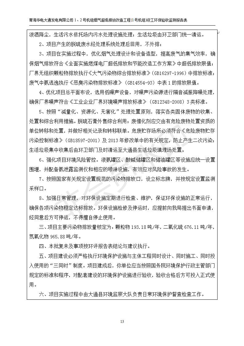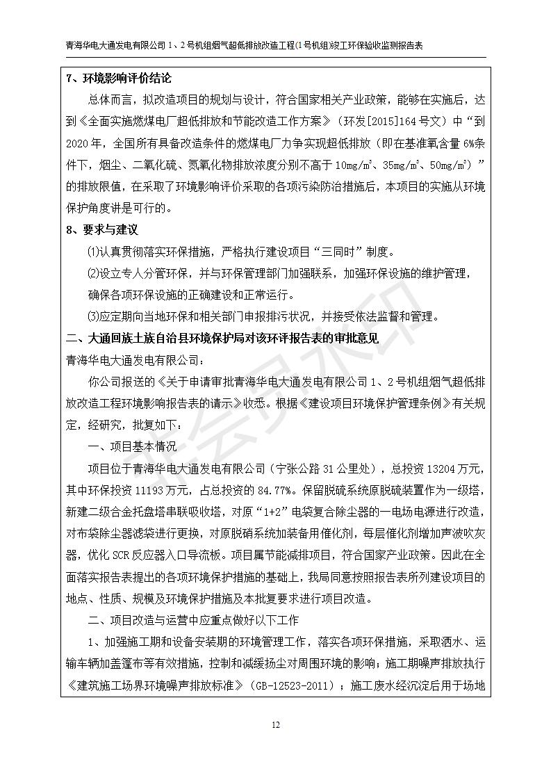 青海華電大通發(fā)電有限公司1、2號機組煙氣超低排放改造工程(1號機組) 竣工環(huán)境保護驗收監(jiān)測報告表公示發(fā)布日期:(2019-2-13) 點擊次數(shù):2576 |