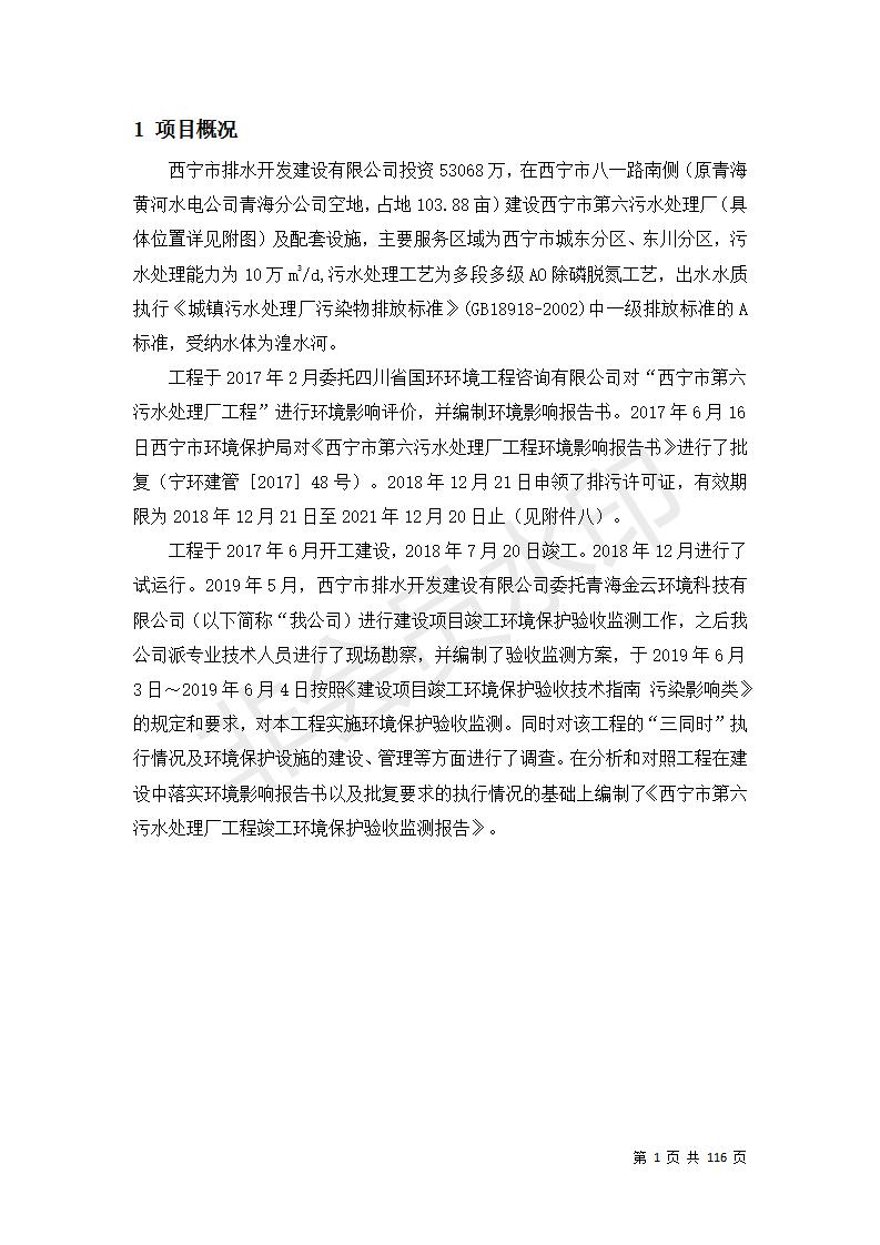 西寧市第六污水處理廠工程竣工環(huán)境保護(hù)驗(yàn)收公示發(fā)布日期:(2019-7-11) 點(diǎn)擊次數(shù):2675 |