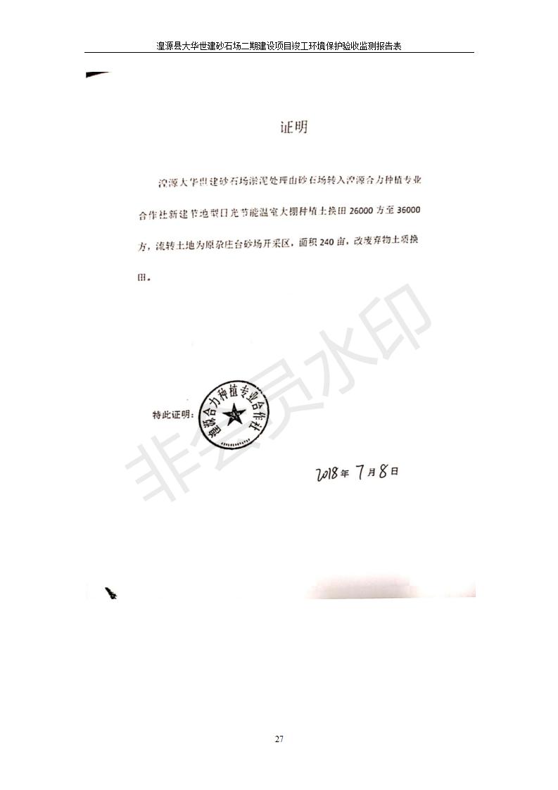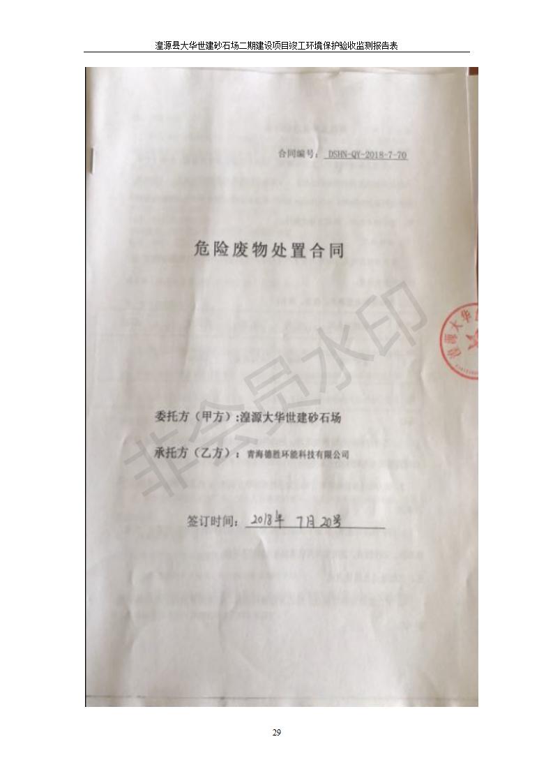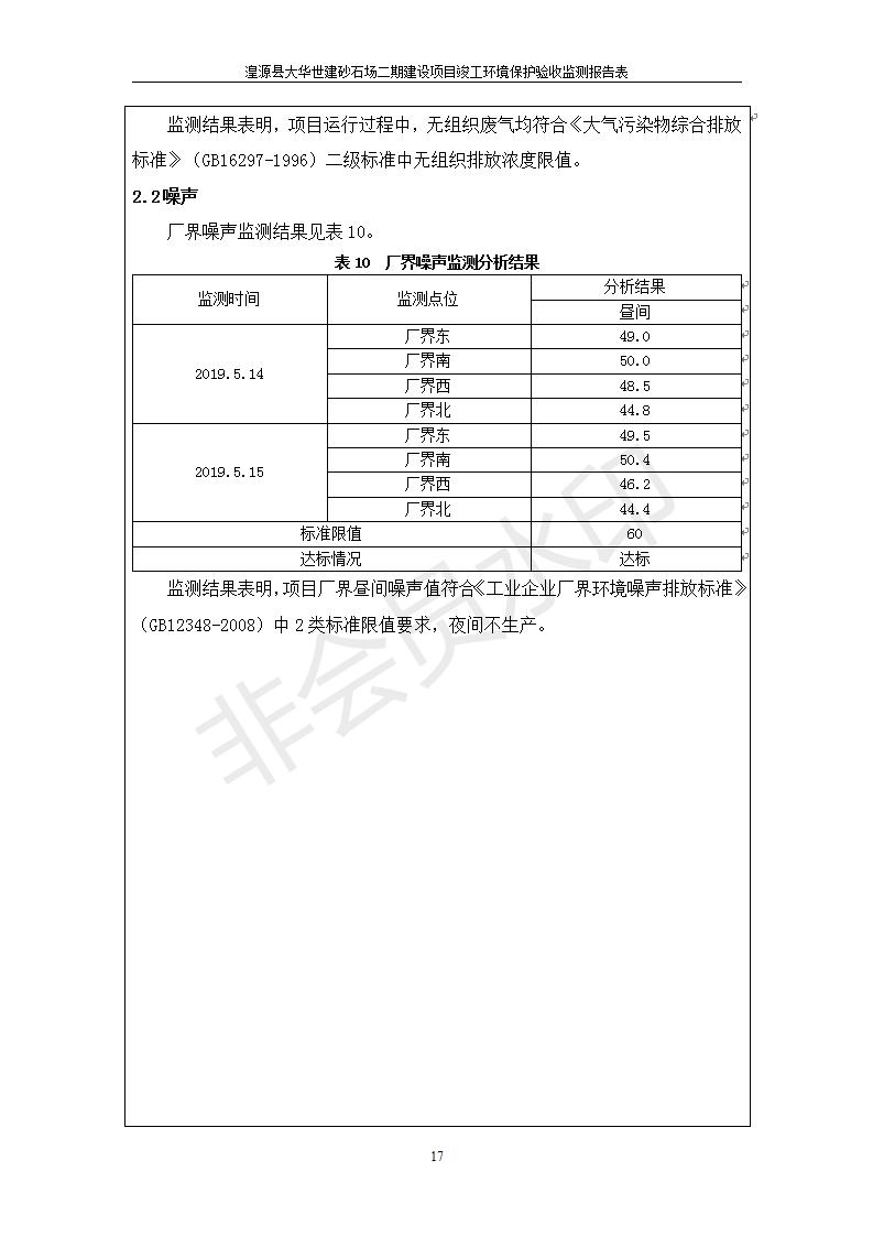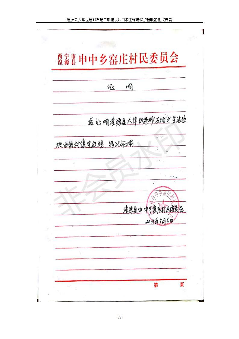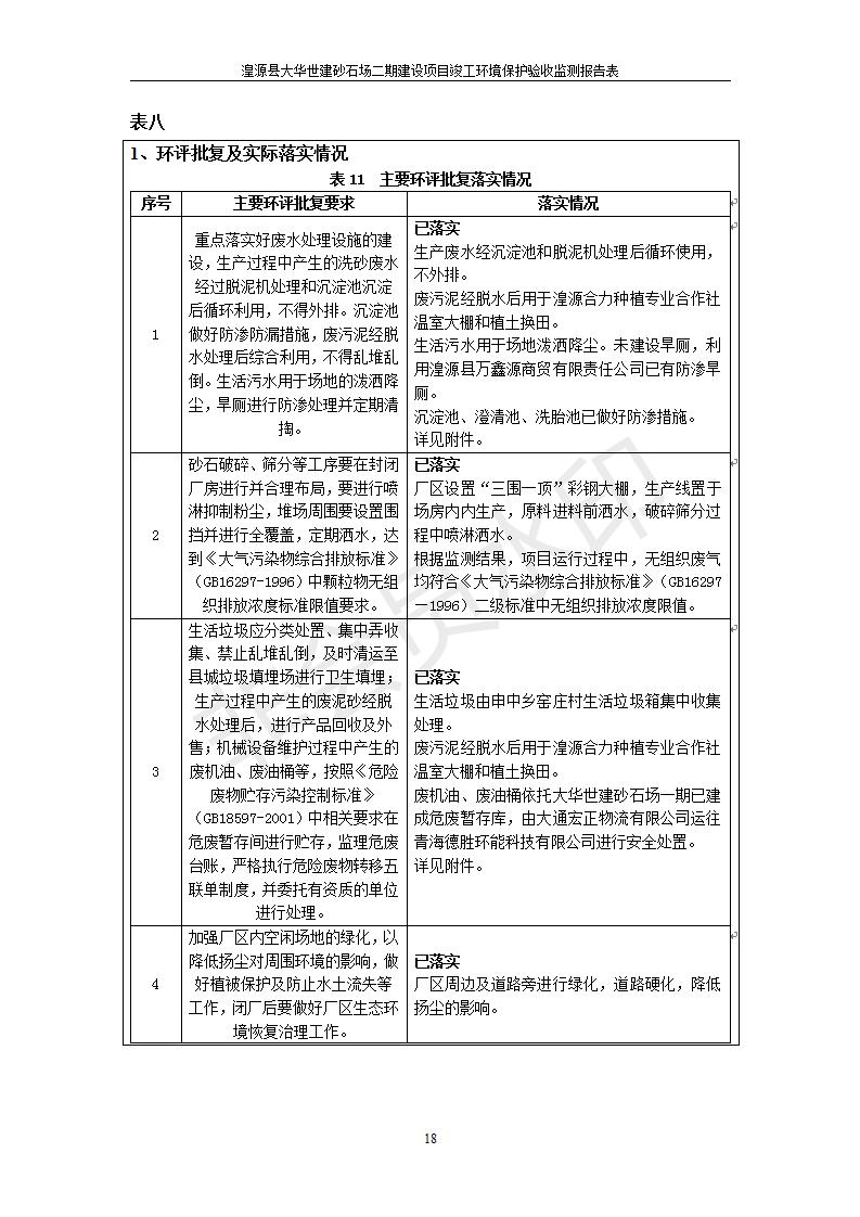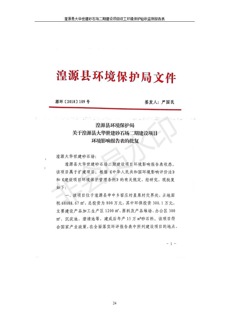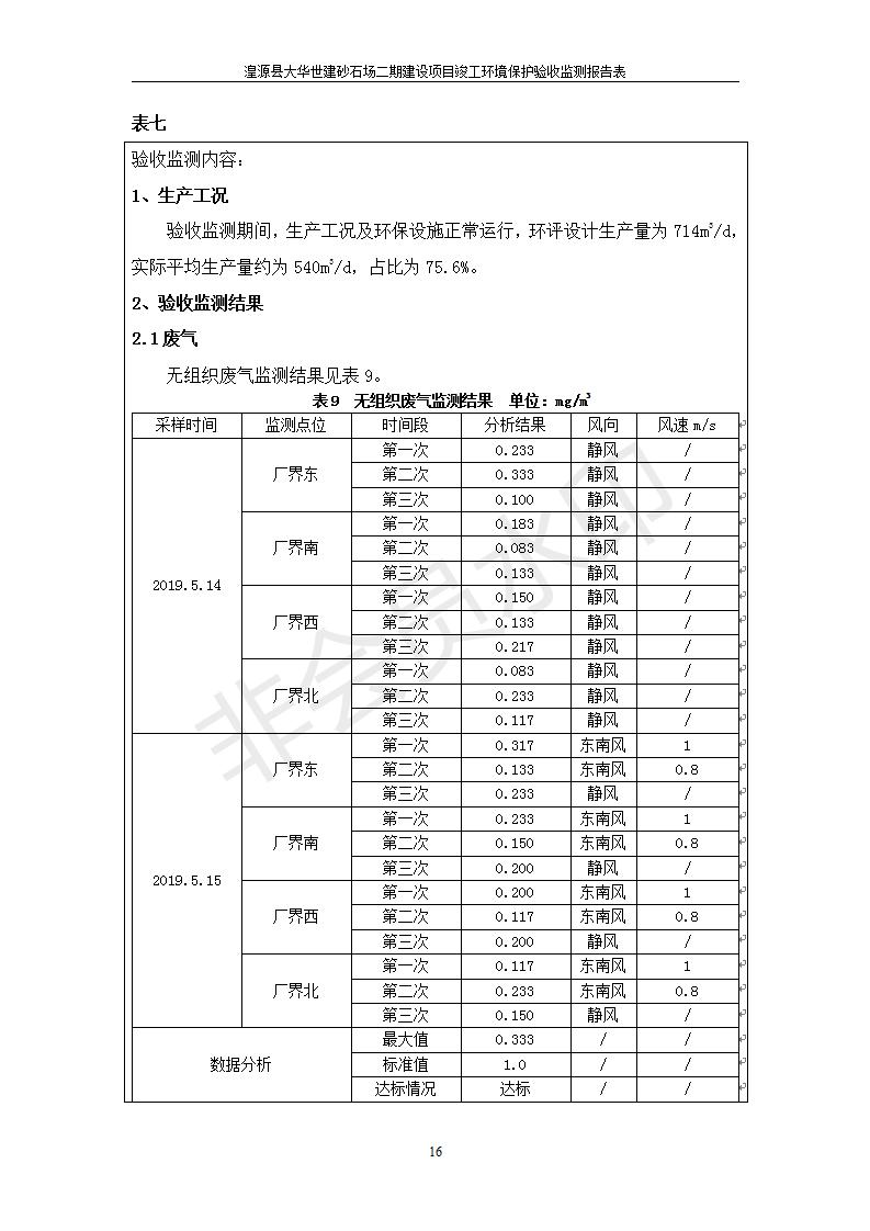 根據(jù)中華人民共和國國務(wù)院令第682號(hào)《國務(wù)院關(guān)于修改〈建設(shè)項(xiàng)目環(huán)境保護(hù)管理?xiàng)l例〉的決定》和《建設(shè)項(xiàng)目竣工環(huán)境保護(hù)驗(yàn)收暫行辦法》(國務(wù)院令682號(hào)),湟源大華世建砂石場(chǎng)湟源縣大華世建砂石場(chǎng)二期建設(shè)項(xiàng)目(包括竣工環(huán)境保護(hù)驗(yàn)收監(jiān)測(cè)報(bào)告表和驗(yàn)收意見)公示如下。 一、項(xiàng)目名稱:湟源縣大華世建砂石場(chǎng)二期建設(shè)項(xiàng)目 二、地點(diǎn):湟源縣申中鄉(xiāng)窯莊村沙崗大小灣 三、建設(shè)單位:湟源大華世建砂石場(chǎng) 四、建設(shè)內(nèi)容:項(xiàng)目主要建設(shè)砂石料產(chǎn)品加工生產(chǎn)區(qū)、原料堆場(chǎng)、產(chǎn)品堆場(chǎng)、辦公區(qū)等。五、聯(lián)系人:張工 六、聯(lián)系電 話:0971-6515411 七、公示時(shí)間:二〇一九年七月二十五日至二〇一九年八月二十一日公示期間,對(duì)上述公示內(nèi)容如有異議,請(qǐng)以書面形式反饋,個(gè)人須署真實(shí)姓名,單位須加蓋公章。