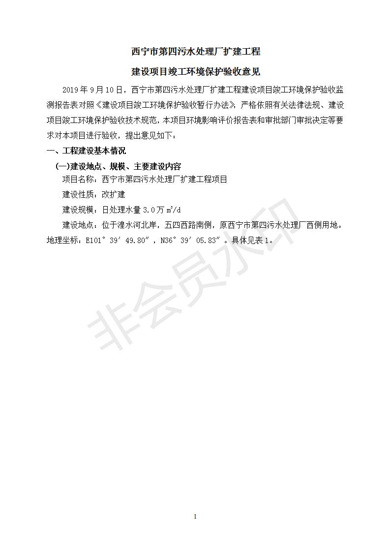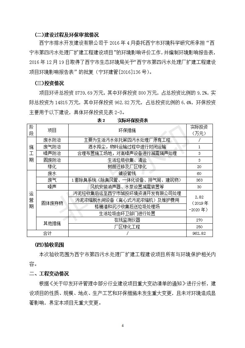 根據(jù)中華人民共和國(guó)國(guó)務(wù)院令第682號(hào)《國(guó)務(wù)院關(guān)于修改〈建設(shè)項(xiàng)目環(huán)境保護(hù)管理?xiàng)l例〉的決定》和《建設(shè)項(xiàng)目竣工環(huán)境保護(hù)驗(yàn)收暫行辦法》(國(guó)務(wù)院令682號(hào)),西寧市第四污水處理廠擴(kuò)建工程建設(shè)項(xiàng)目(包括竣工環(huán)境保護(hù)驗(yàn)收監(jiān)測(cè)報(bào)告表和驗(yàn)收意見(jiàn))公示如下。 一、項(xiàng)目名稱:西寧市第四污水處理廠擴(kuò)建工程建設(shè)項(xiàng)目 二、地點(diǎn):五四西路南側(cè),原西寧市第四污水處理廠西側(cè)用地 三、建設(shè)單位:西寧市排水開(kāi)發(fā)建設(shè)有限公司 四、建設(shè)內(nèi)容:第四污水處理廠擴(kuò)建工程五、聯(lián)系人:張工 六、聯(lián)系電 話:0971-6515411 七、公示時(shí)間:二〇一九年九月十七日至二〇一九年十月十八日公示期間,對(duì)上述公示內(nèi)容如有異議,請(qǐng)以書(shū)面形式反饋,個(gè)人須署真實(shí)姓名,單位須加蓋公章。
