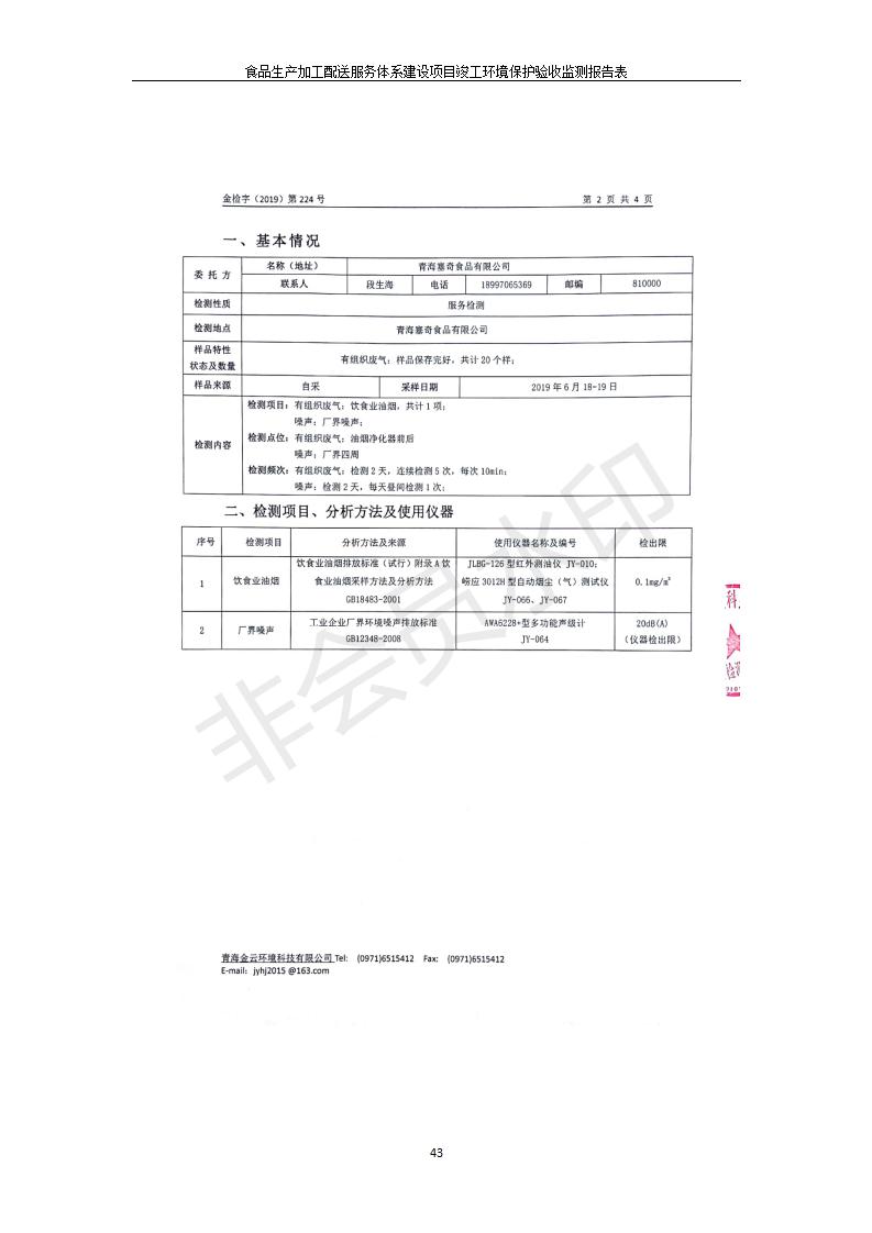 根據(jù)中華人民共和國國務院令第682號《國務院關(guān)于修改〈建設項目環(huán)境保護管理條例〉的決定》和《建設項目竣工環(huán)境保護驗收暫行辦法》(國務院令682號),食品生產(chǎn)加工配送服務體系建設項目(包括竣工環(huán)境保護驗收監(jiān)測報告表和驗收意見)公示如下。 一、項目名稱:食品生產(chǎn)加工配送服務體系建設項目 二、地點:西寧市城北區(qū)生物園區(qū)迎新路5號食品保健品集聚區(qū)1號樓 六、聯(lián)系電 話:0971-6515411 七、公示時間:二〇一九年九月二十日至二〇一九年十月二十二日 公示期間,對上述公示內(nèi)容如有異議,請以書面形式反饋,個人須署真實姓名,單位須加蓋公章。