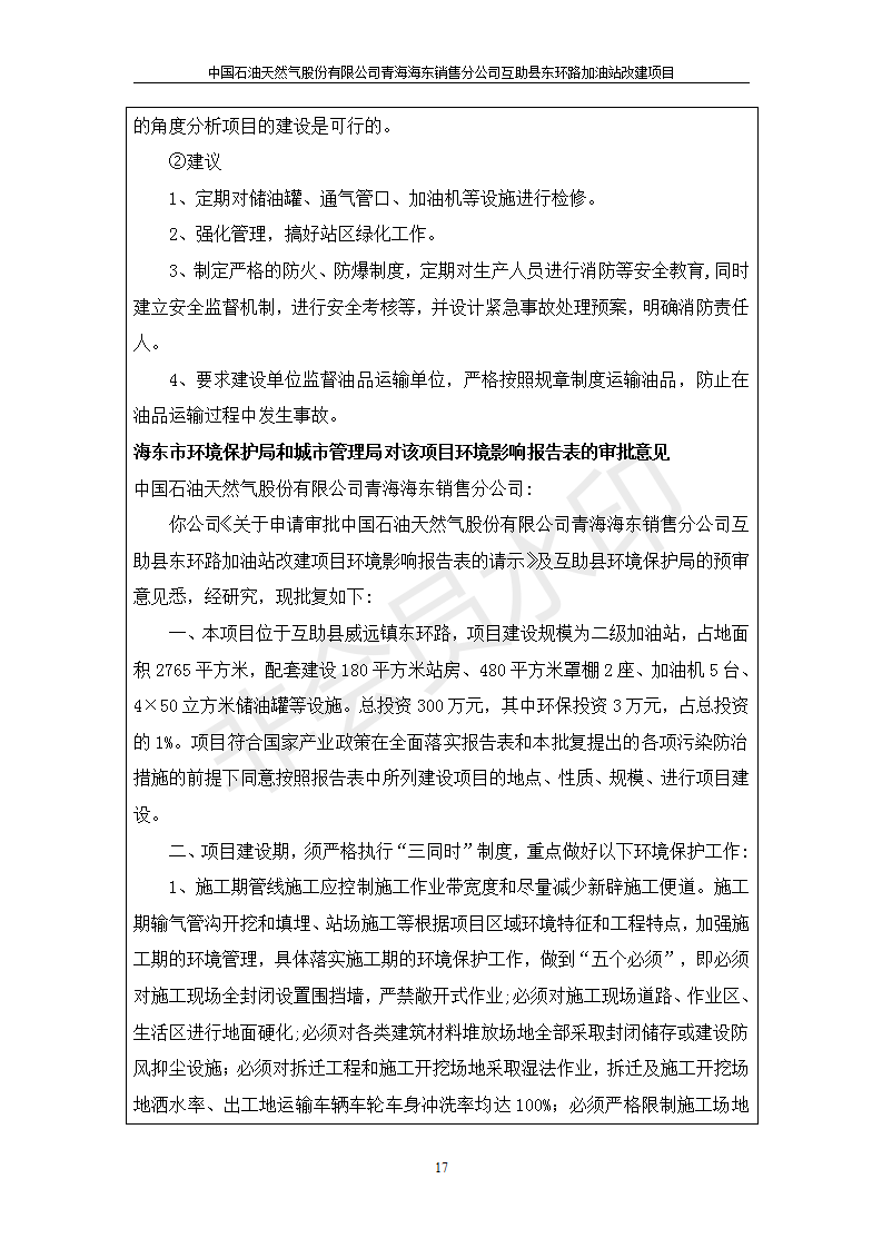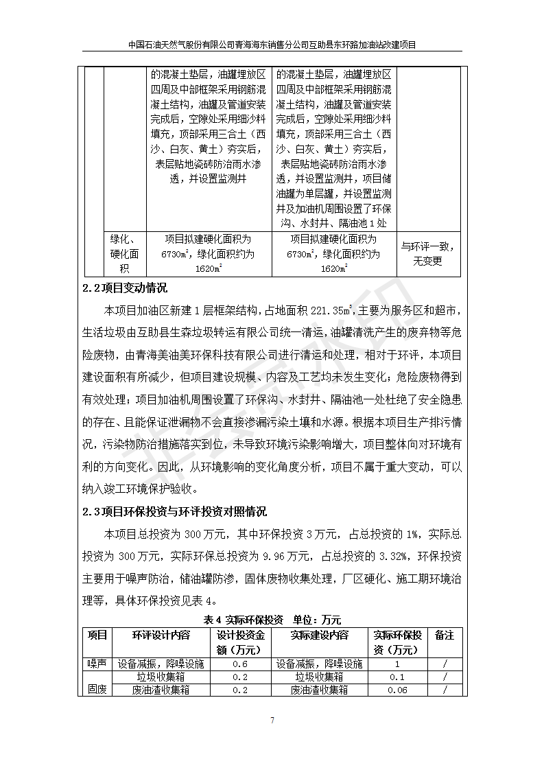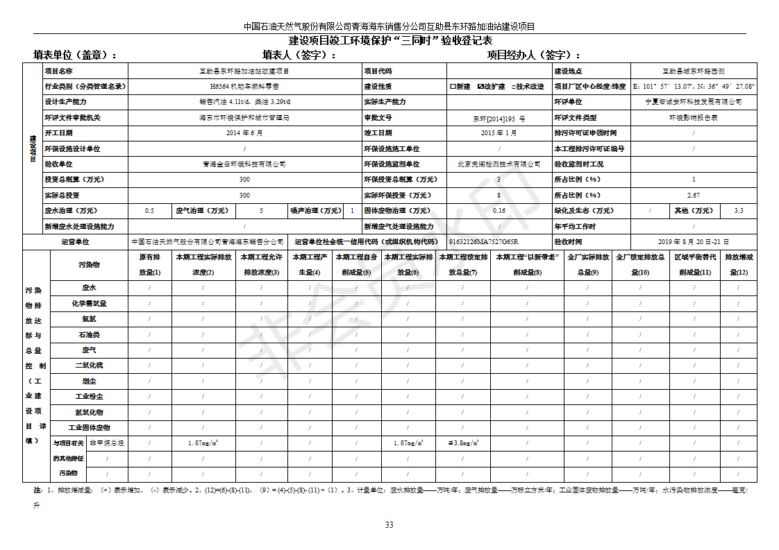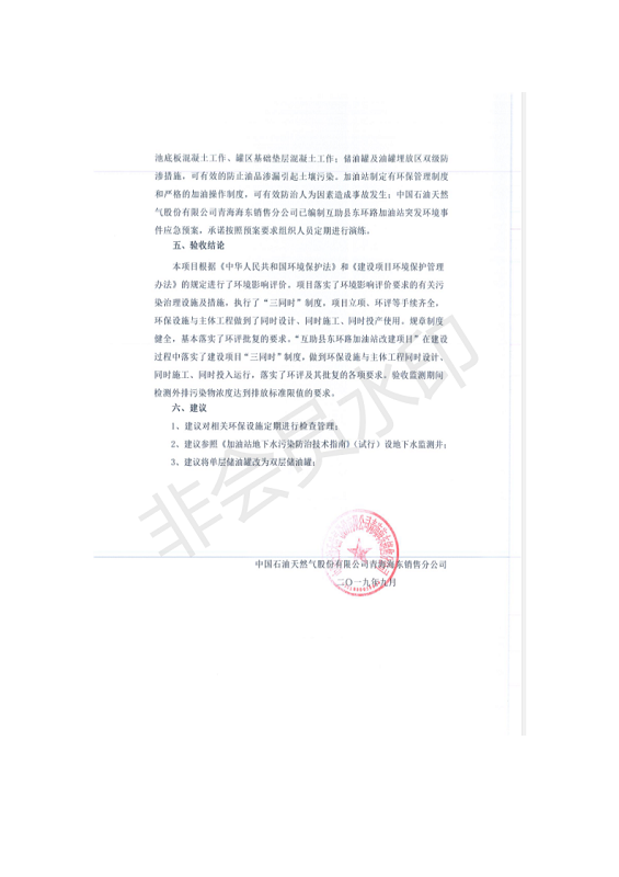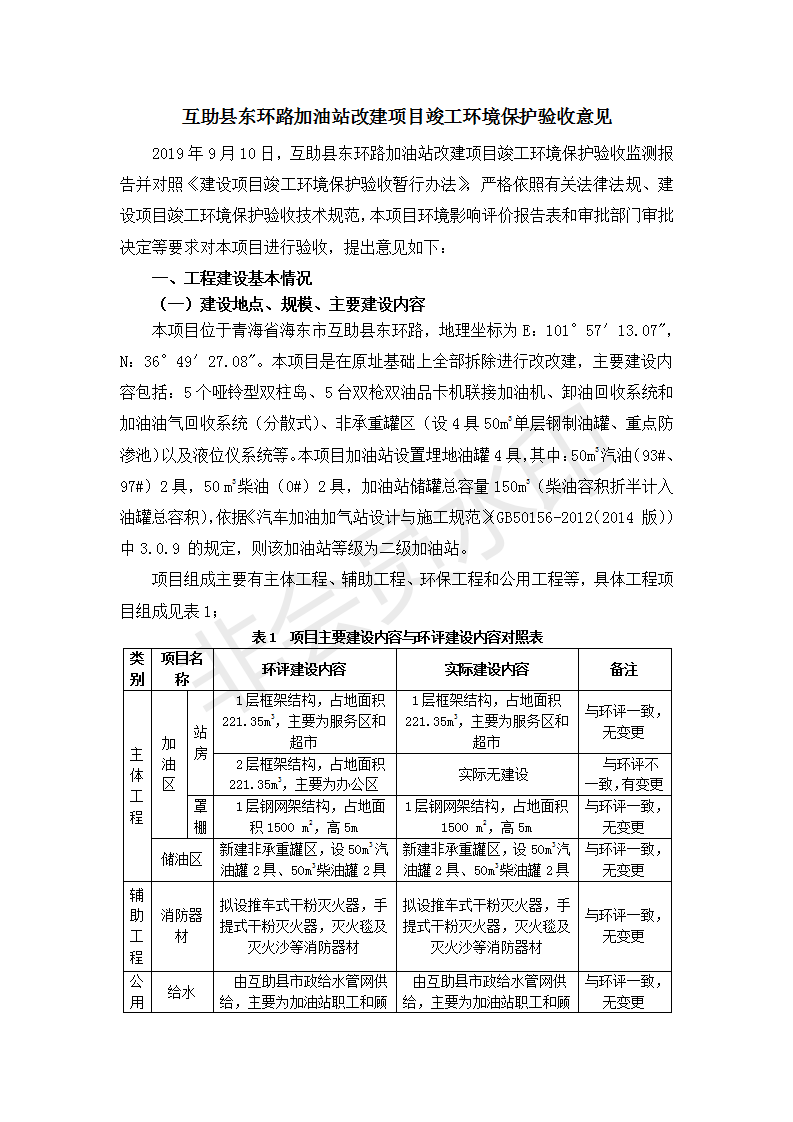 根據(jù)中華人民共和國(guó)國(guó)務(wù)院令第682號(hào)《國(guó)務(wù)院關(guān)于修改〈建設(shè)項(xiàng)目環(huán)境保護(hù)管理?xiàng)l例〉的決定》和《建設(shè)項(xiàng)目竣工環(huán)境保護(hù)驗(yàn)收暫行辦法》(國(guó)務(wù)院令682號(hào)),互助縣東環(huán)路加油站改建項(xiàng)目(包括竣工環(huán)境保護(hù)驗(yàn)收監(jiān)測(cè)報(bào)告表和驗(yàn)收意見(jiàn))公示如下。 一、項(xiàng)目名稱:互助縣東環(huán)路加油站改建項(xiàng)目 二、地點(diǎn):青海省海東市互助縣東環(huán)路 六、聯(lián)系電話:0971-6515411 七、公示時(shí)間:二〇一九年九月二十七日至二〇一九年十月二十九日 公示期間,對(duì)上述公示內(nèi)容如有異議,請(qǐng)以書(shū)面形式反饋,個(gè)人須署真實(shí)姓名,單位須加蓋公章。