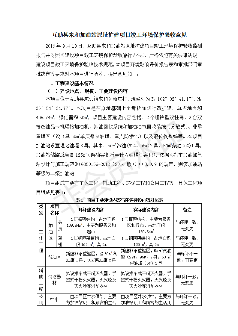根據(jù)中華人民共和國(guó)國(guó)務(wù)院令第682號(hào)《國(guó)務(wù)院關(guān)于修改〈建設(shè)項(xiàng)目環(huán)境保護(hù)管理?xiàng)l例〉的決定》和《建設(shè)項(xiàng)目竣工環(huán)境保護(hù)驗(yàn)收暫行辦法》(國(guó)務(wù)院令682號(hào)),互助縣東和加油站原址擴(kuò)建項(xiàng)目(包括竣工環(huán)境保護(hù)驗(yàn)收監(jiān)測(cè)報(bào)告表和驗(yàn)收意見(jiàn))公示如下。 一、項(xiàng)目名稱:互助縣東和加油站原址擴(kuò)建項(xiàng)目 二、地點(diǎn):互助縣威遠(yuǎn)鎮(zhèn)東和鄉(xiāng)新莊村 六、聯(lián)系電話:0971-6515411 七、公示時(shí)間:二〇一九年九月二十七日至二〇一九年十月二十九日 公示期間,對(duì)上述公示內(nèi)容如有異議,請(qǐng)以書(shū)面形式反饋,個(gè)人須署真實(shí)姓名,單位須加蓋公章。