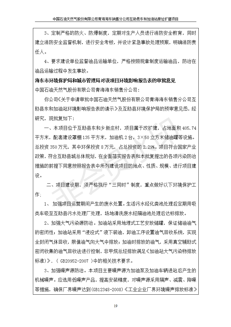 互助縣東和加油站原址擴(kuò)建項(xiàng)目 竣工環(huán)境保護(hù)驗(yàn)收監(jiān)測(cè)報(bào)告表公示發(fā)布日期:(2019-9-27) 點(diǎn)擊次數(shù):2401 |