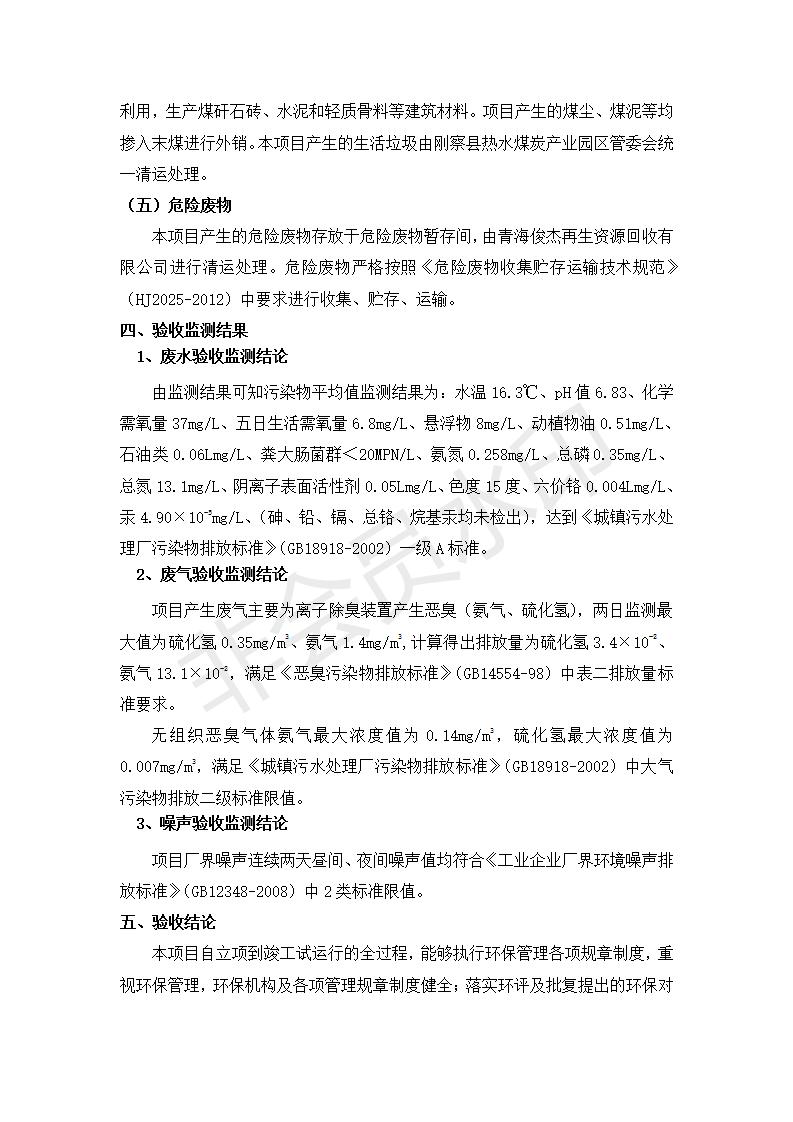 根據(jù)中華人民共和國(guó)國(guó)務(wù)院令第682號(hào)《國(guó)務(wù)院關(guān)于修改〈建設(shè)項(xiàng)目環(huán)境保護(hù)管理?xiàng)l例〉的決定》和《建設(shè)項(xiàng)目竣工環(huán)境保護(hù)驗(yàn)收暫行辦法》(國(guó)務(wù)院令682號(hào)),青海義盛選煤有限公司熱水選煤項(xiàng)目(階段性)竣工環(huán)境保護(hù)驗(yàn)收監(jiān)測(cè)報(bào)告(包括竣工環(huán)境保護(hù)驗(yàn)收監(jiān)測(cè)報(bào)告和驗(yàn)收意見(jiàn))公示如下。 一、項(xiàng)目名稱:青海義盛選煤有限公司熱水選煤項(xiàng)目(階段性) 二、地點(diǎn):剛察縣熱水鎮(zhèn) 此外還包括公用工程系統(tǒng)、消防系統(tǒng)及輔助生產(chǎn)設(shè)施等。 五、聯(lián)系人:張工六、聯(lián)系電話:0971-6515411 七、公示時(shí)間:二〇一九年十一月十二日至二〇一九年十二月九日