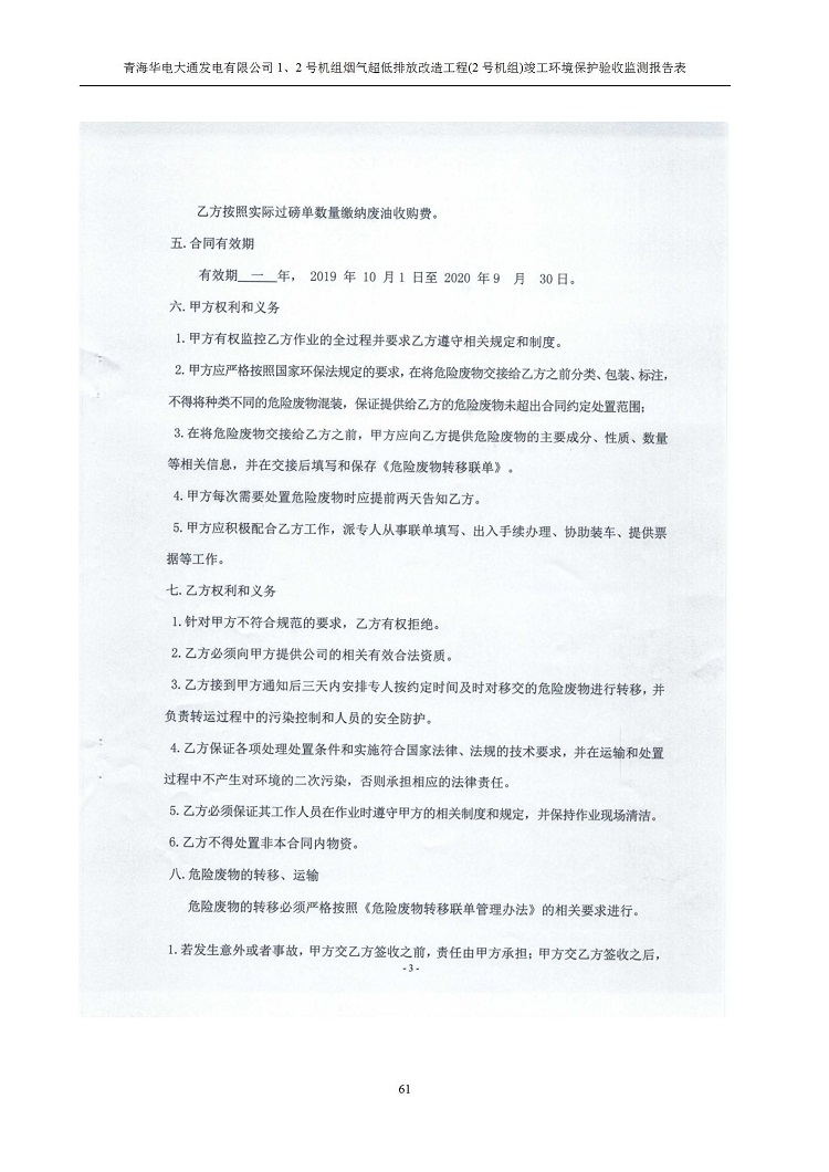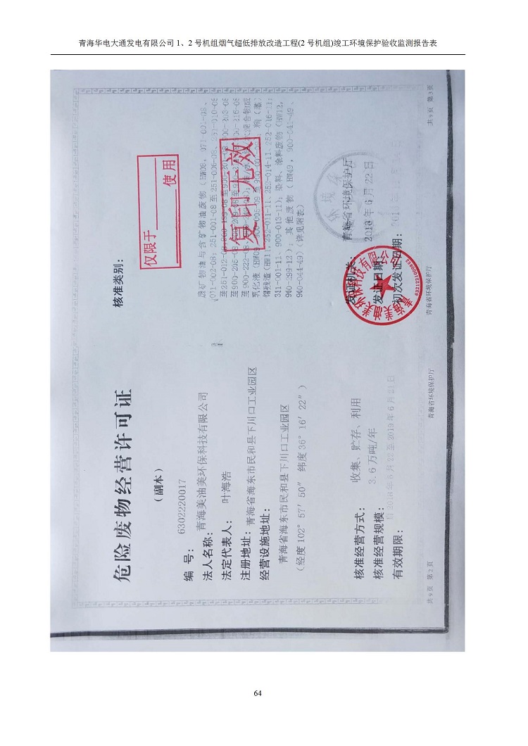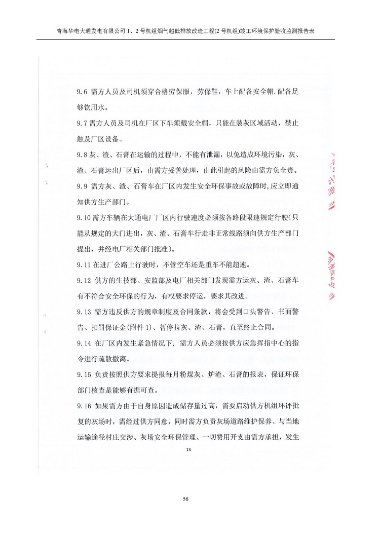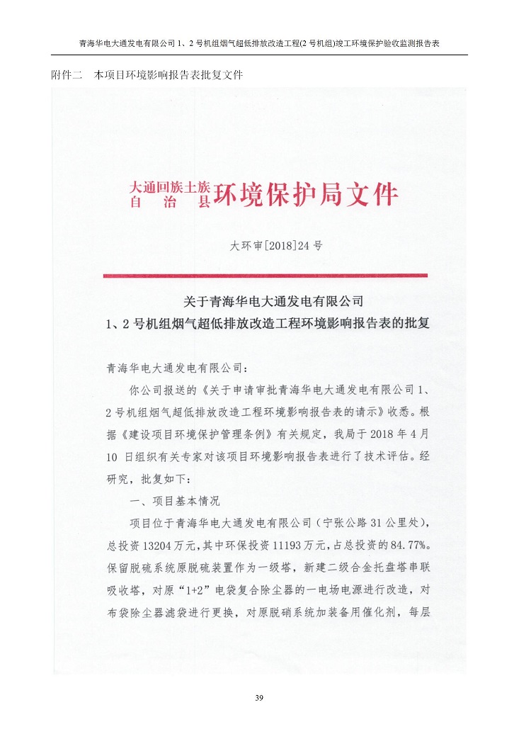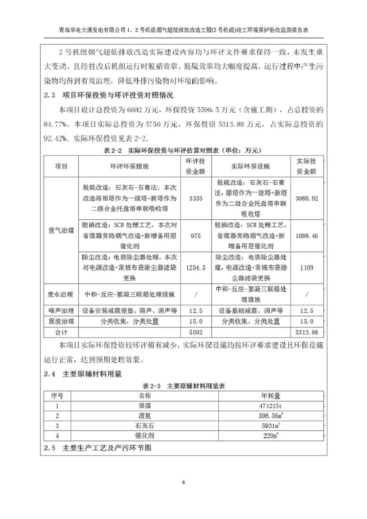 根據(jù)中華人民共和國國務(wù)院令第682號《國務(wù)院關(guān)于修改〈建設(shè)項目環(huán)境保護管理條例〉的決定》和《建設(shè)項目竣工環(huán)境保護驗收暫行辦法》(國務(wù)院令682號),青海華電大通發(fā)電有限公司1、2號機組煙氣超低排放改造工程(2號機組) (包括竣工環(huán)境保護驗收監(jiān)測報告表和驗收意見)公示如下。 一、項目名稱:青海華電大通發(fā)電有限公司1、2號機組煙氣超低排放改造工程(2號機組) 竣工環(huán)境保護驗收監(jiān)測報告表 二、地點:青海省西寧市大通縣寧張公路31公里處 三、建設(shè)單位:青海華電大通發(fā)電有限公司 四、建設(shè)內(nèi)容:2號機組煙氣超低排放改造,2號機組改造內(nèi)容為脫硫系統(tǒng)保留原脫硫裝置作為一級塔,新建二級合金托盤塔串聯(lián)吸收塔;對原“1+2”電袋復(fù)合除塵器的一電場電源進行改造,對布袋除塵器濾袋進行更換;對原脫硝系統(tǒng)選擇性催化還原法(SCR)脫硝工藝加裝備用催化劑,每層催化劑增加聲波吹灰器,優(yōu)化SCR反應(yīng)器入口導(dǎo)流板。 五、聯(lián)系人:馬世敏 六、聯(lián)系電 話:0971-6515411 七、公示時間:二〇二〇年四月二十九日至二〇二〇年五月二十八日 公示期間,對上述公示內(nèi)容如有異議,請以書面形式反饋,個人須署真實姓名,單位須加蓋公章。