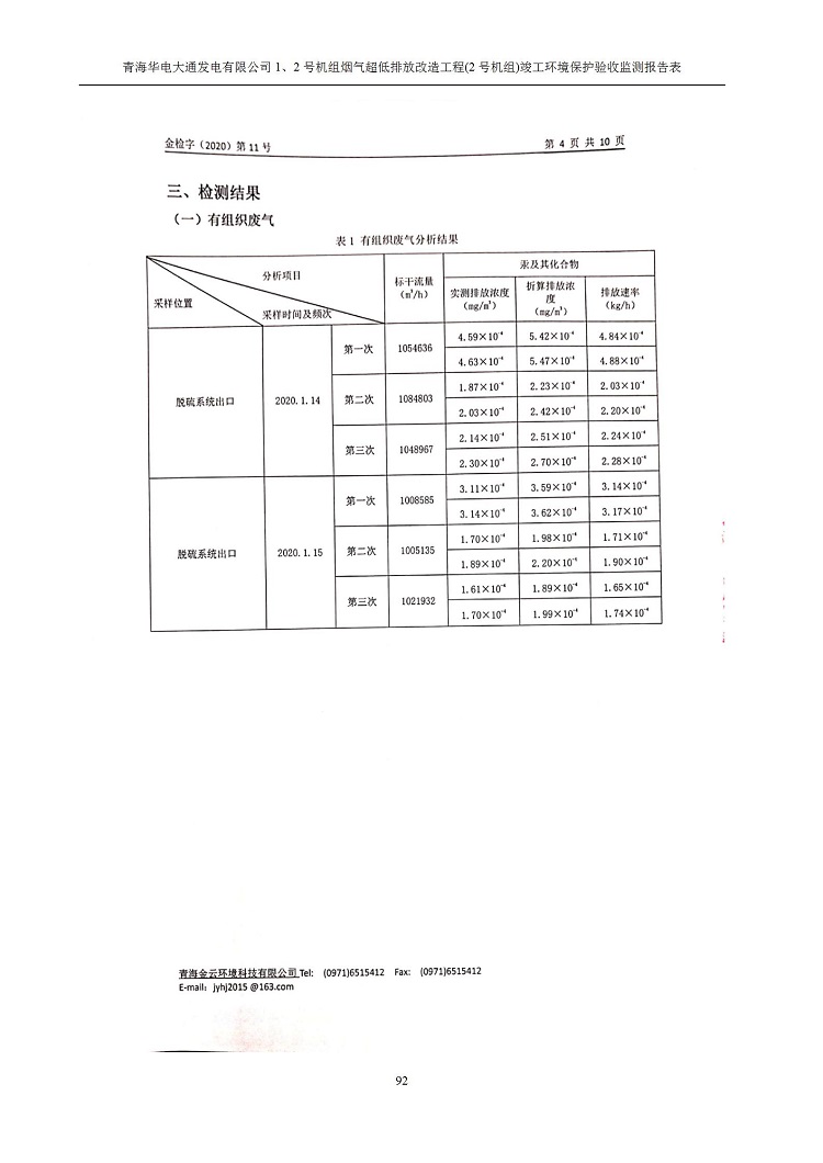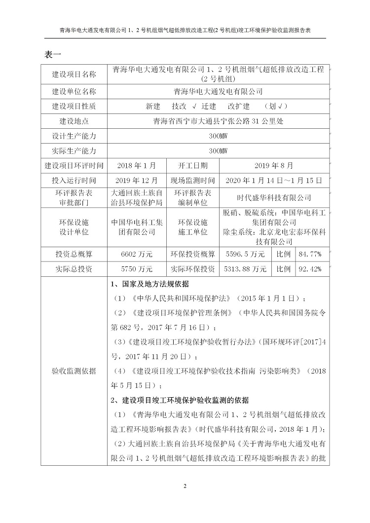 青海華電大通發(fā)電有限公司1、2號機組煙氣超低排放改造工程(2號機組) 竣工環(huán)境保護驗收監(jiān)測報告表公示發(fā)布日期:(2020-4-29) 點擊次數(shù):2456 |