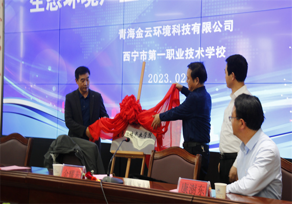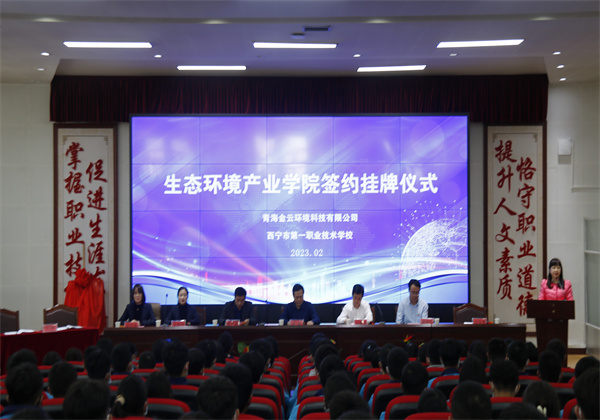 為深入貫徹落實職業(yè)教育現(xiàn)場推進(jìn)會精神,深化產(chǎn)教融合校企合作,2023年2月23日,西寧市第一職業(yè)技術(shù)學(xué)校與青海金云環(huán)境科技有限公司隆重舉行校企生態(tài)環(huán)境產(chǎn)業(yè)學(xué)院簽約掛牌儀式。西寧市教育局領(lǐng)導(dǎo),西寧市第一職業(yè)技術(shù)學(xué)校領(lǐng)導(dǎo)及生態(tài)環(huán)境產(chǎn)業(yè)學(xué)院師生,金云科技高層領(lǐng)導(dǎo)出席簽約儀式。儀式由西寧第一職業(yè)技術(shù)學(xué)校黨委書記、校長金耀東主持。