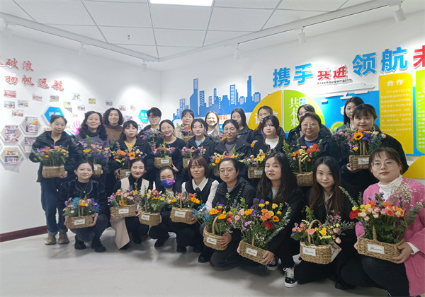 接下來(lái),我們的女職工一起完成了一件特別有意義的活動(dòng)。插花是一門(mén)具有濃郁生活氣息的高雅藝術(shù)活動(dòng),不僅能豐富我們的日常生活,美化環(huán)境,而且還能提高個(gè)人的藝術(shù)修養(yǎng),愿精美的藝術(shù)創(chuàng)作讓您在百花盛開(kāi)的美景中清新恰然,陶醉其中,給您的生活添姿加彩,蘇聯(lián)教育家莫博林斯基說(shuō):人們的智慧在手指尖上,插花藝術(shù)既讓大家在動(dòng)手的造型中充分開(kāi)啟智慧,又能在與花為伴中感受大自然的美,這種人與自然融合的美譽(yù),帶給大家的將是凈化心靈,陶治情操,將是喜悅的歡樂(lè),將會(huì)使大家更加熱愛(ài)生活。